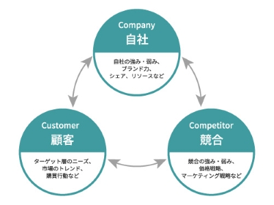 「顧客(Customer)」「競合(Competitor)」「自社(Company)」の3つの視点から分析します。